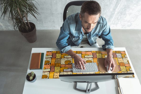משטחי המחשב שלנו מודפסים בסטודיו בטכנולוגיה ירוקה ובאיכות גבוהה על גבי משטח PVC גמיש ונעים למגע