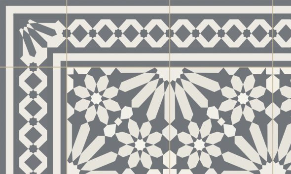 ראנר מעוצב, מודפס על גבי PVC, בסגנון אריחים מרוקאים, מוזאיקה בצבעים: אפור,אפור בהיר, בז', טרקוטה, כחול, שחור ותכלת