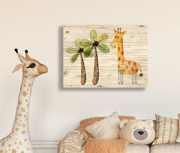 תמונת עץ מודפסת היא תוספת מקורית לעיצוב חדר הילדים.