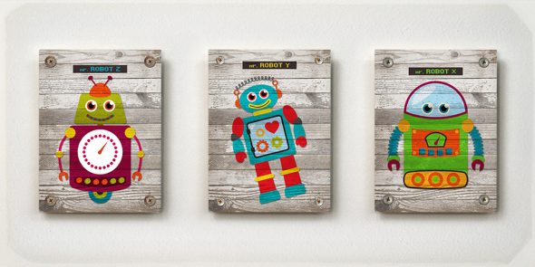 תמונת עץ מודפסת היא תוספת מקורית לעיצוב חדר הילדים.