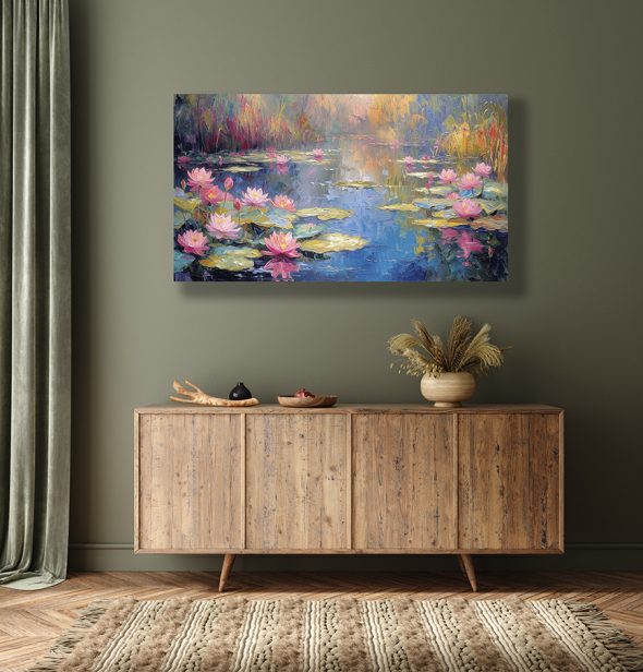 את תמונת הקנבס מותחים בנגריה האומנותית בסטודיו ע”ג מסגרת עץ מקצועית ,ודואגים ל”עיטוף גלריה”- זאת אומרת שההדפסה מופיעה גם בדופן התמונה (כמו שציירים אמיתיים עושים),עכשיו נשאר רק למדוד את הקיר ולבחור תמונה ומידה.