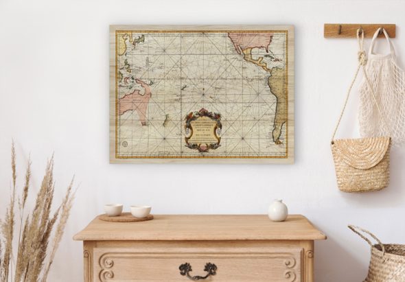 מפה ימית עתיקה מ-1776 – מודפסת על לוח עץ