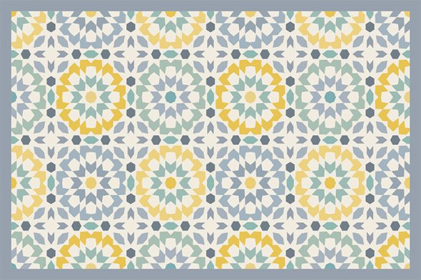 פלייסמ מעוצב, מודפס על גבי PVC, בסגנון אריחים מרוקאים, מוזאיקה בצבעים: אפור וצהוב וסגול