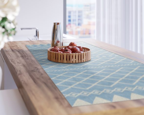 ראנר מעוצב, מודפס על גבי PVC, בסגנון גיאומטרי בצבעים בג', כחול.