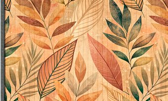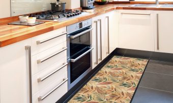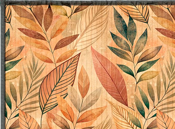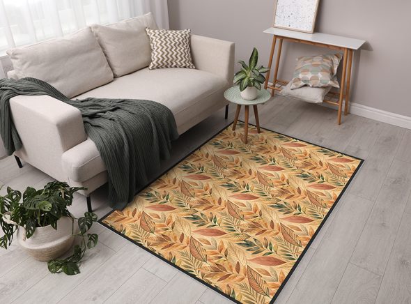 שטיח מעוצב, מודפס על גבי פסי במבוק טבעי, בסגנון בוטני צבעוני