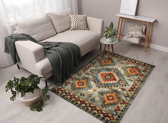 הדוגמאות מסורתיות, הצבעים עזים. השטיח מוסיף טוויסט מעניין לכל חדר: סלון , מטבח וחדרי מגורים.