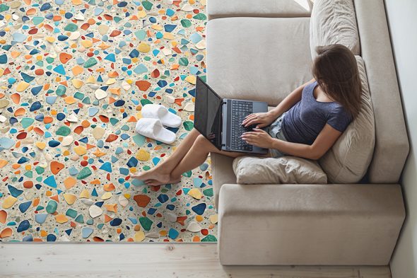 טראצו – אריחים העשויים בדוגמת אבנים בצבעים שונים המשוקעים בבטון ומוחלקים.