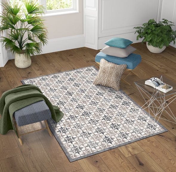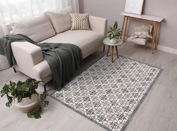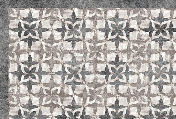 שטיח מעוצב, מודפס על גבי PVC, בצבעים: אפור בהיר, אפור כהה וכחול