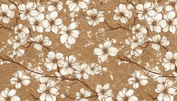 פרחים לבנים בסגנון רומנטי על רקע של טקסטורה בצבע חום.