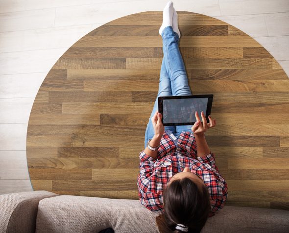 שטיח פי.וי.סי מודפס בדוגמת "פרקט עץ" הוא בחירה מעולה למטבח, חדר שינה או סלון.