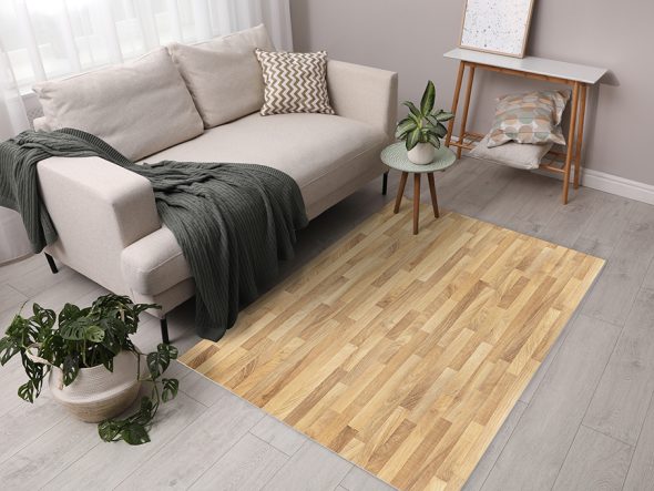 שטיח פי.וי.סי מודפס בדוגמת "פרקט עץ" הוא בחירה מעולה למטבח, חדר שינה או סלון.