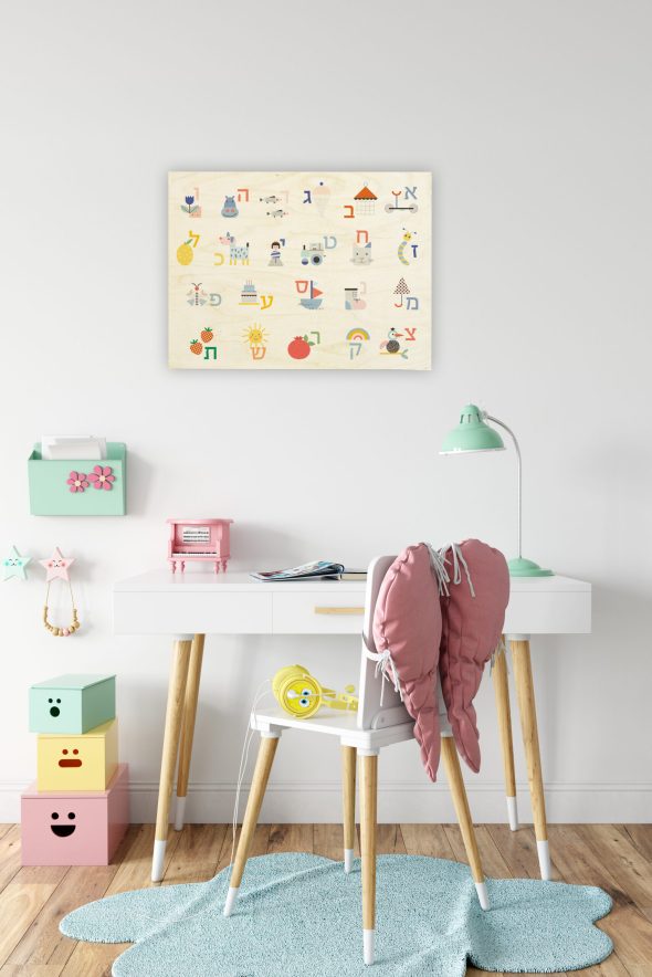 תמונת עץ מודפסת היא תוספת מקורית לעיצוב חדר הילדים.